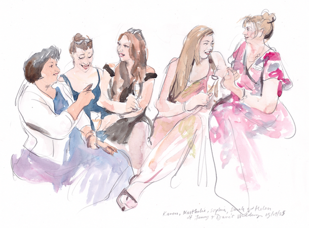 Wedding Portraits in Pencil and Watercolour, Each about 10-15 minutes for a sitting. The guests got to take them away at the end of the day.